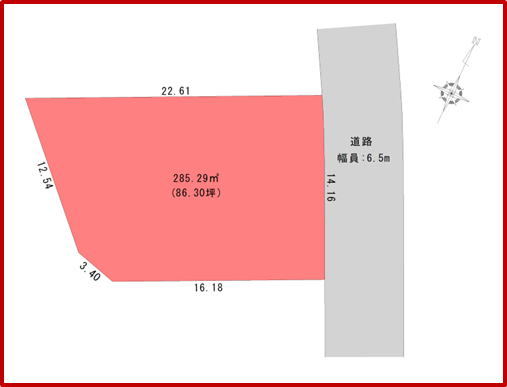 土地面積 | 285.29u(86.30坪) 分筆後の面積 |